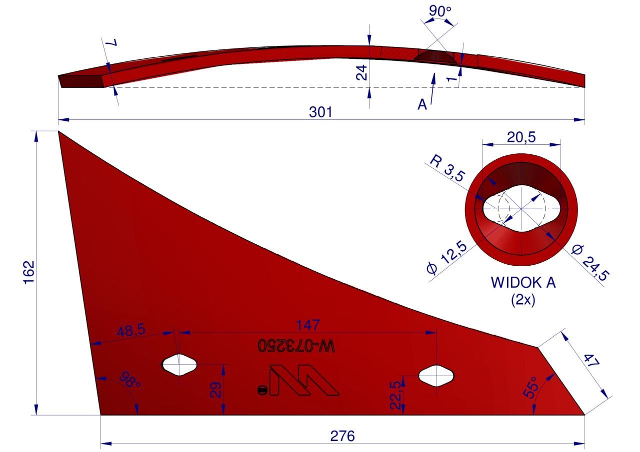 Pierś odkładni prawa dwuotworowa zastosowanie Kverneland stal borowa Waryński