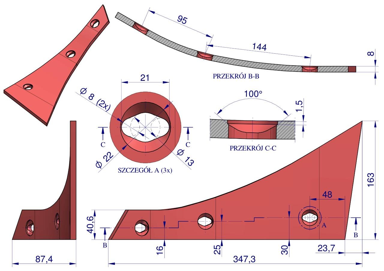 Pierś odkładni prawa trzyotworowa zastosowanie Kverneland stal borowa Waryński