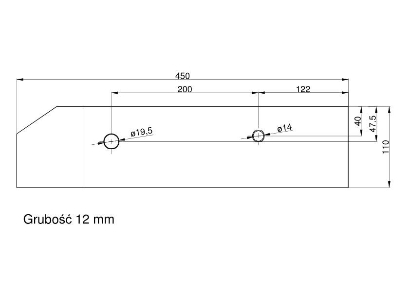 Płoza krótka prawa Kverneland Vulcan pasuje śruba M14X34OV1 – 1 szt. + M12x34OV2 – 1 szt.