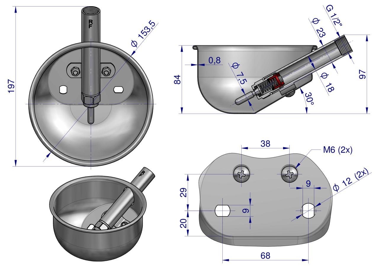 Poidło miskowe stal nierdzewna dla warchlaków M ROYAL FARM ( pakowane po 20 ) [RF-20903012]