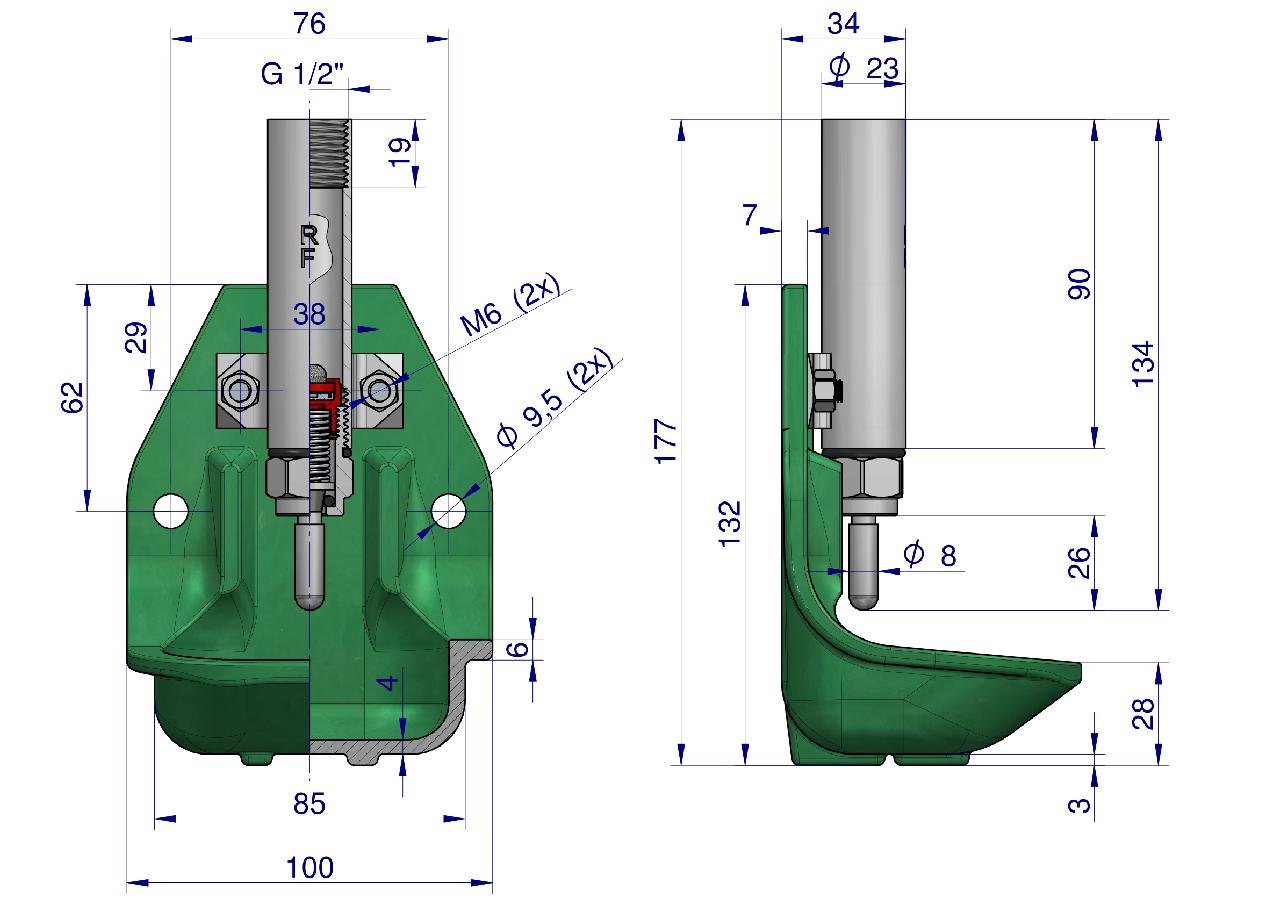 Poidło dla prosiąt miskowe wykonane z żeliwa szarego Powtarzalność zapewnia kontrola jakości wbudowana w proces wytwarzania. Ich właściwości pozwalają na optymalny przepływ transportowanej masy. Malowane proszkowo zapewnia zwiększoną odporność na korozję i ścieranie