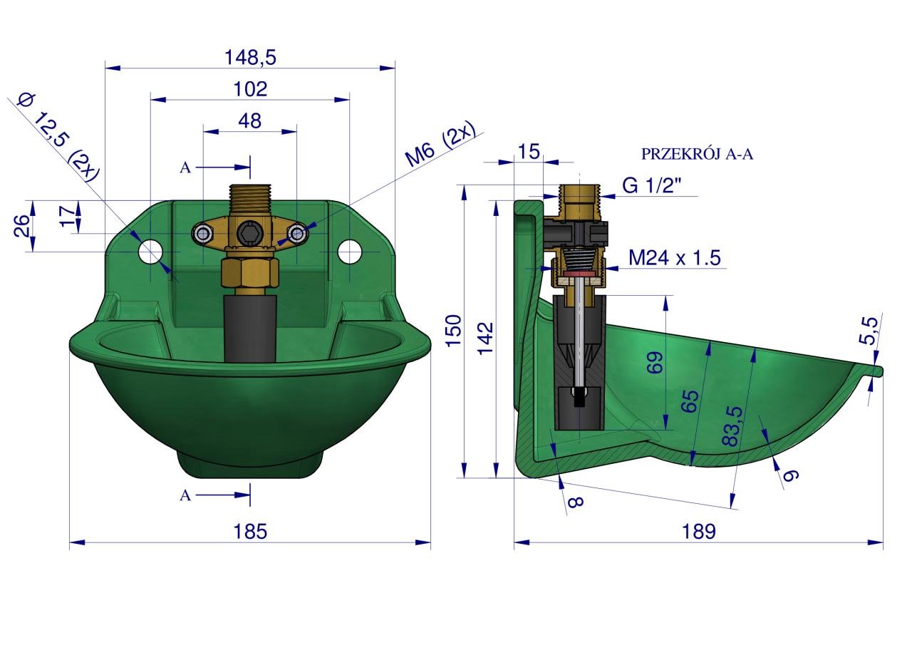 Poidło dla tuczników miskowe wykonane z żeliwa szarego Powtarzalność zapewnia kontrola jakości wbudowana w proces wytwarzania. Ich właściwości pozwalają na optymalny przepływ transportowanej masy. Malowane proszkowo zapewnia zwiększoną odporność na korozję i ścieranie