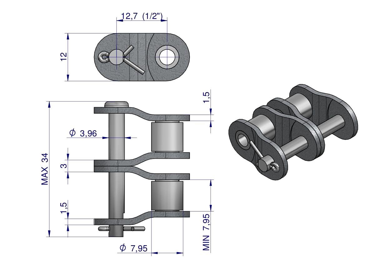 Półogniwo łańcucha P08B-2 (R2 1/2) Waryński ( sprzedawane po 10 ) [W-P08B2]
