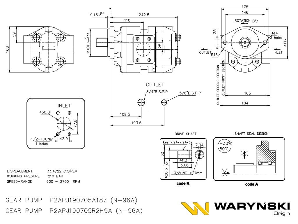 Pompa hydrauliczna N-096A P2AJ190705A187 JCB Sitemaster, 3CX Grey Cab, Hammermaster, Grey Cab Waryński [N-096A]