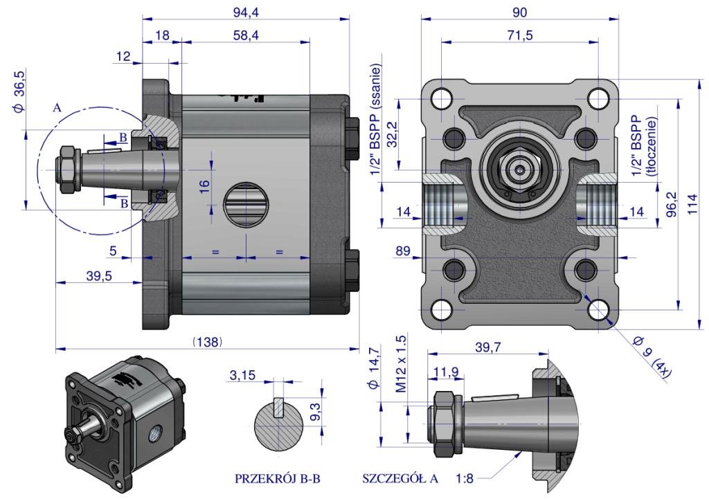 Pompa hydrauliczna, wzmocniona W-PHAG2E11P (wydajność: 11,0 cm3/obr.) Waryński. Pompy hydrauliczne 2-grupy Waryński dzięki niewielkim, kompaktowym wymiarom, oraz zwartej i wytrzymałej konstrukcji znajdują szerokie zastosowanie w wielu gałęziach przemysłu, rolnictwie, hydraulice mobilnej. Nasze pompy są dodatkowo wzmocnione żeliwnymi pokrywami – gwarantuje to długą i bezawaryjną eksploatację. Geometryczna objętość robocza pomp tej grupy mieści się w zakresie od 4 do 31 cm3/obr.