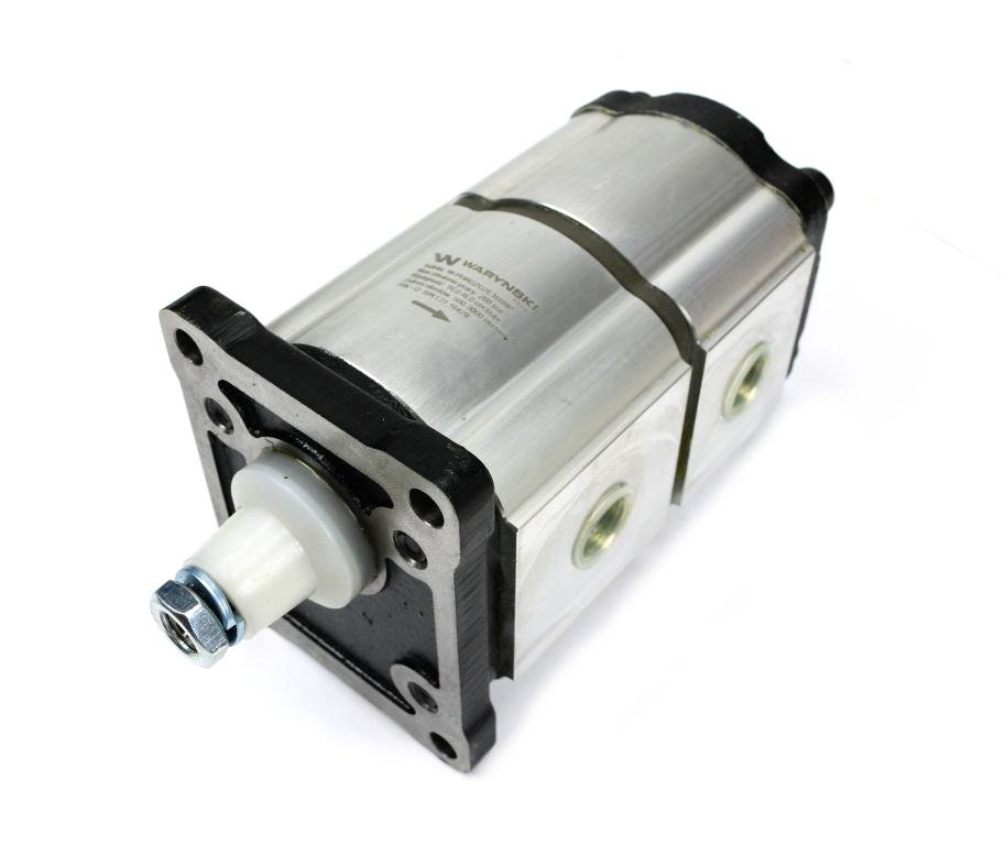 Pompa hydrauliczna tandemowa, wzmocniona W-PHAG2G2E1608P (wydajność: 16/8 cm3/obr.) Waryński. Pompy hydrauliczne 2-grupy Waryński dzięki niewielkim, kompaktowym wymiarom, oraz zwartej i wytrzymałej konstrukcji znajdują szerokie zastosowanie w wielu gałęziach przemysłu, rolnictwie, hydraulice mobilnej. Nasze pompy są dodatkowo wzmocnione żeliwnymi pokrywami – gwarantuje to długą i bezawaryjną eksploatację.