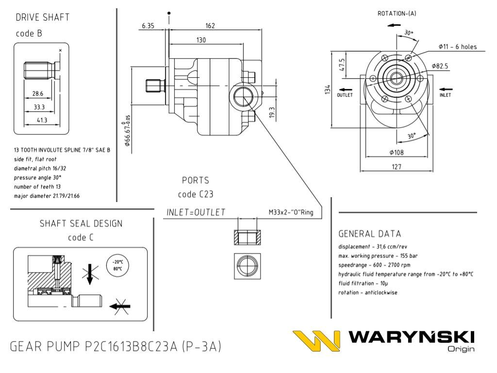 Pompa P-3A P2C1613B8C23A Ładowarka Fadroma, HSW, oboroty lewe Waryński