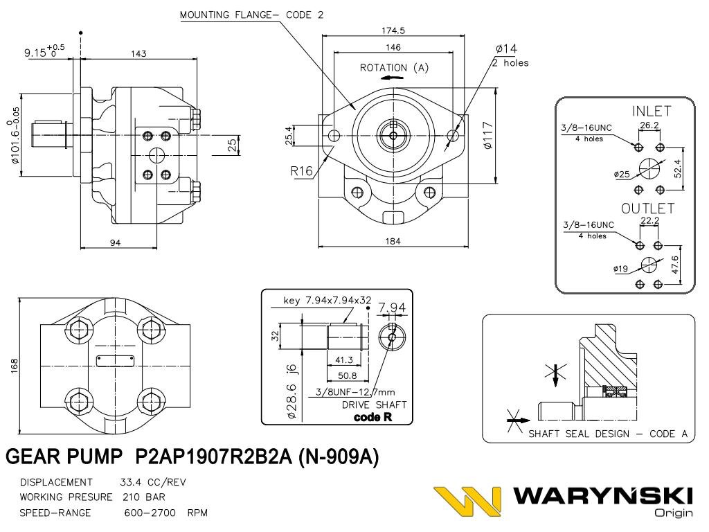 Napisz pierwszą opinię o „Pompa zębata N-909A P2AP1907R2B2A Ładowarka teleskopowa JCB 520, 520-4 Waryński [N-909A]”