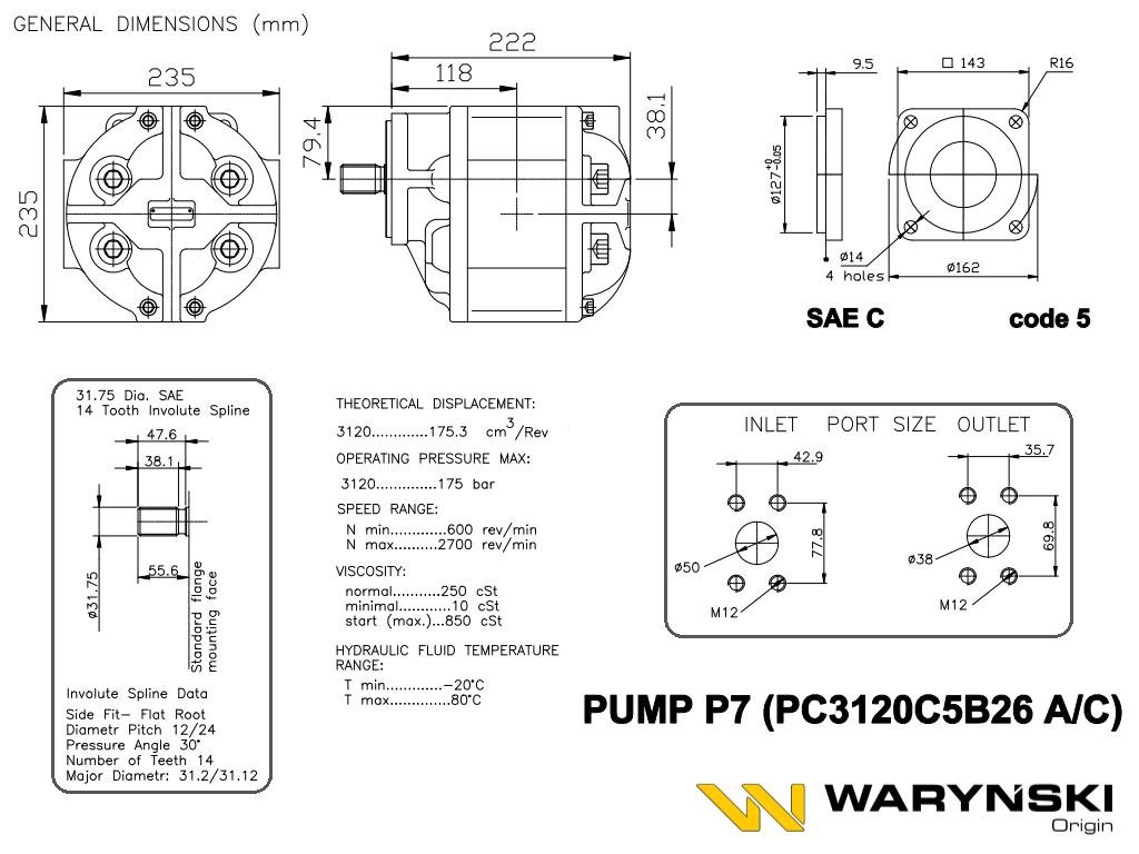 Pompa zebata P-7A PC3120C5B26A Ładowarka HSW Ł-34 obroty lewe Waryński [P-7A]