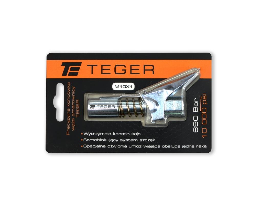 Precyzyjna czteroszczękowa końcówka węża smarownicy z dźwignią oraz blokadą M10x1 TEGER