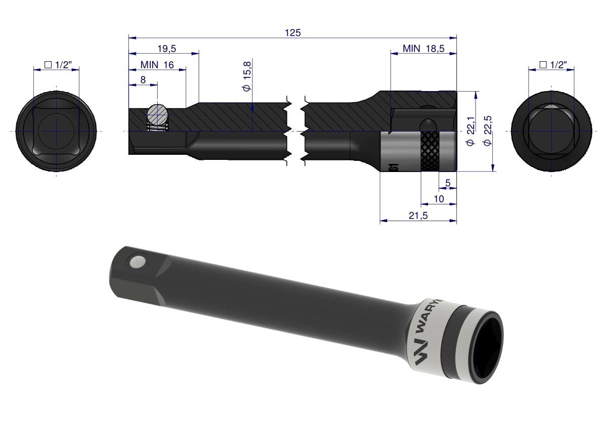 Przedłużka 1/2″. 125mm, Waryński [WMN131]