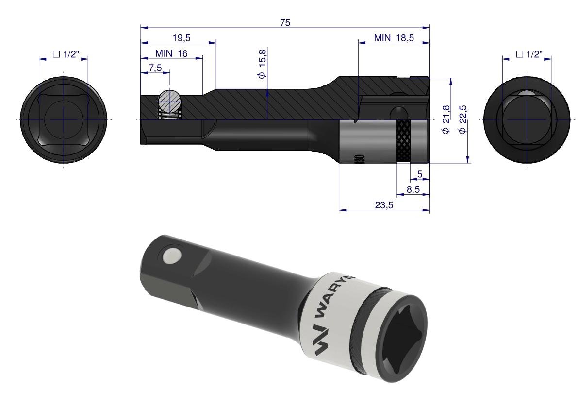 Przedłużka 1/2″. 75mm, Waryński [WMN130]
