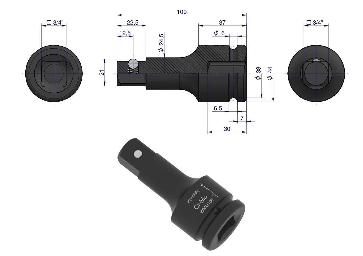Przedłużka do nasadek udarowych 3/4″. 100mm. CrMo. Waryński [WMU106]