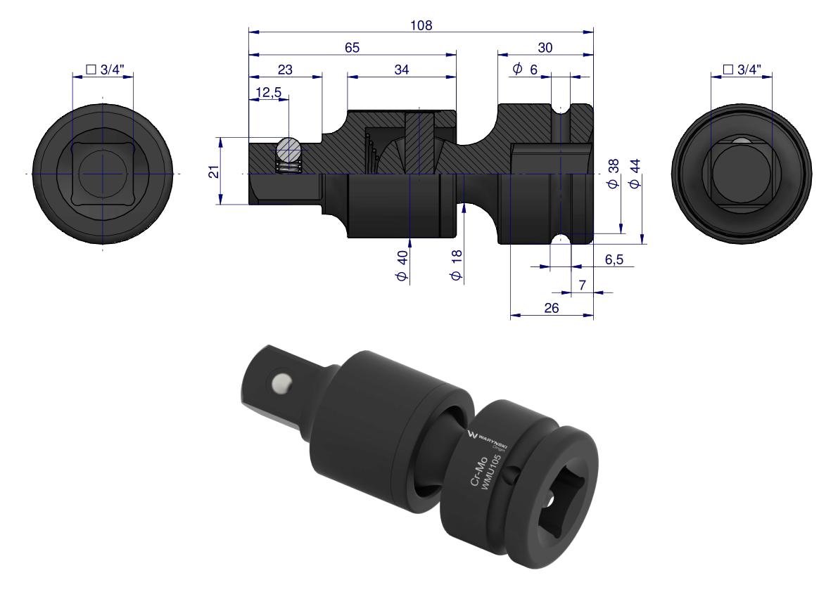 Przegub do nasadek udarowych 3/4″. CrMo. Waryński [WMU105]
