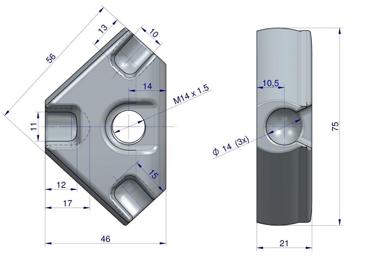 Przegub trójkątny Joysticka z systemem mocowania linek na kulkę – część zamienna – element konstrukcyjny mocowany wewnątrz Joysticka.