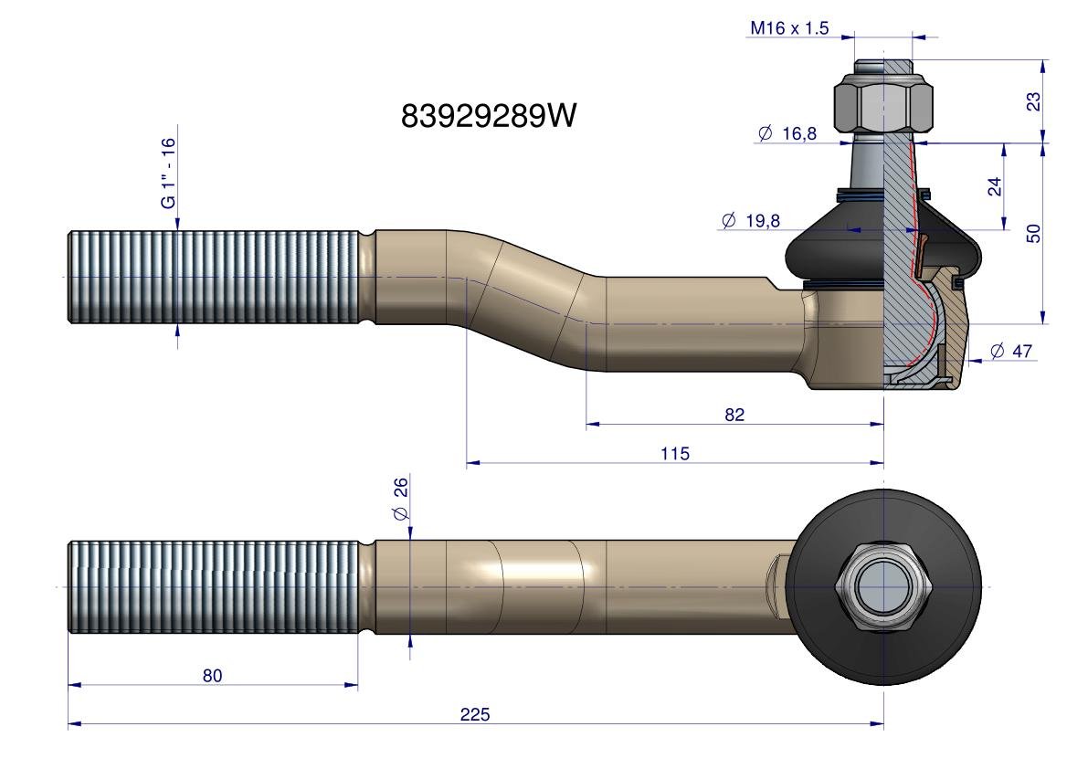 Przegub kierowniczy 1″ 83929289 WARYŃSKI [83929289W]