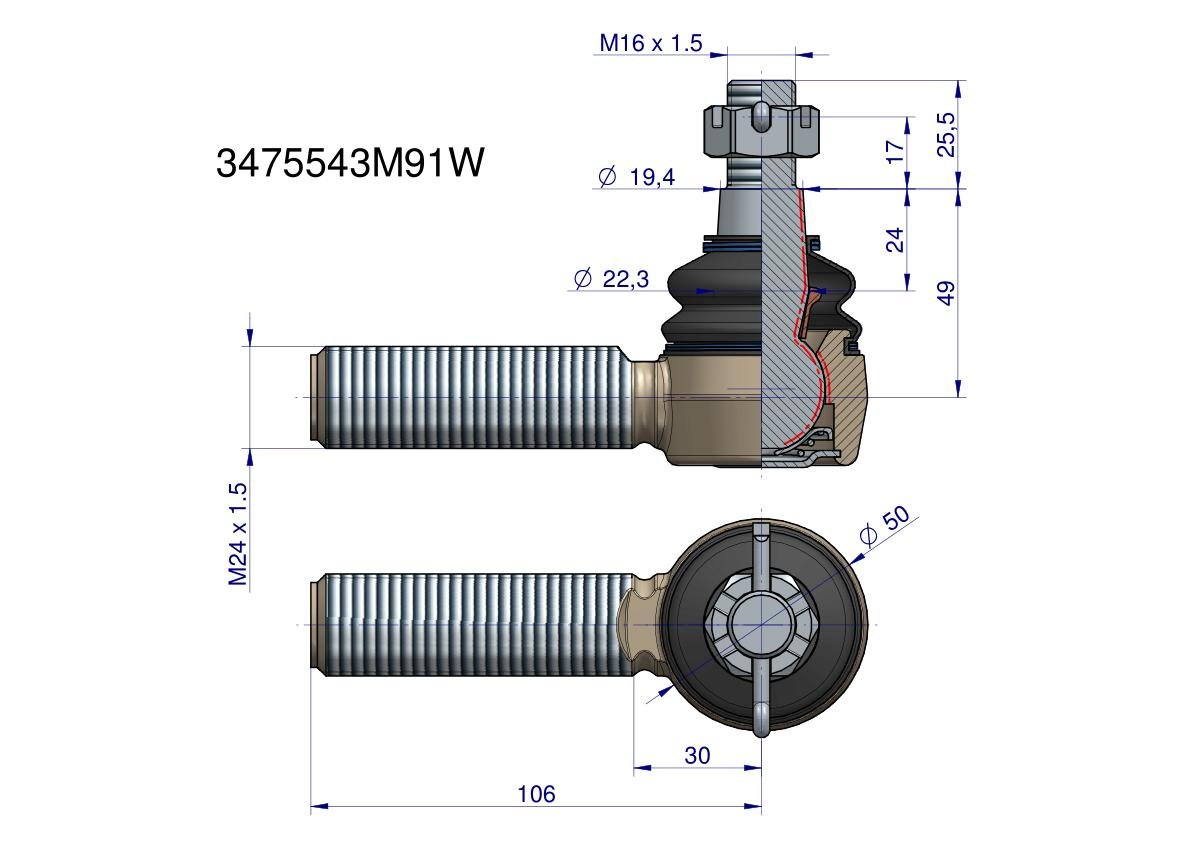 Przegub kierowniczy 106mm – M24x1,5 3475543M91 WARYŃSKI [3475543M91W]