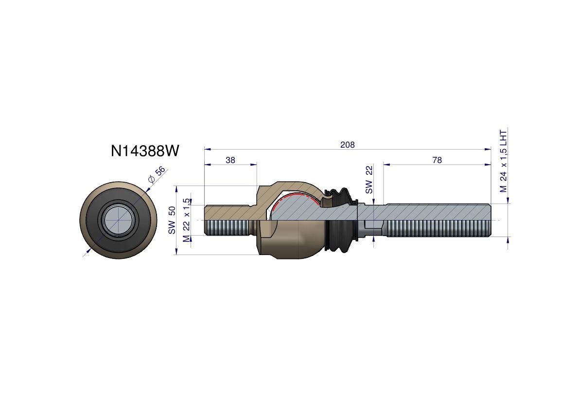 Przegub kierowniczy 208mm – M22x1,5; M24x1,5L N14388 WARYŃSKI [N14388W]