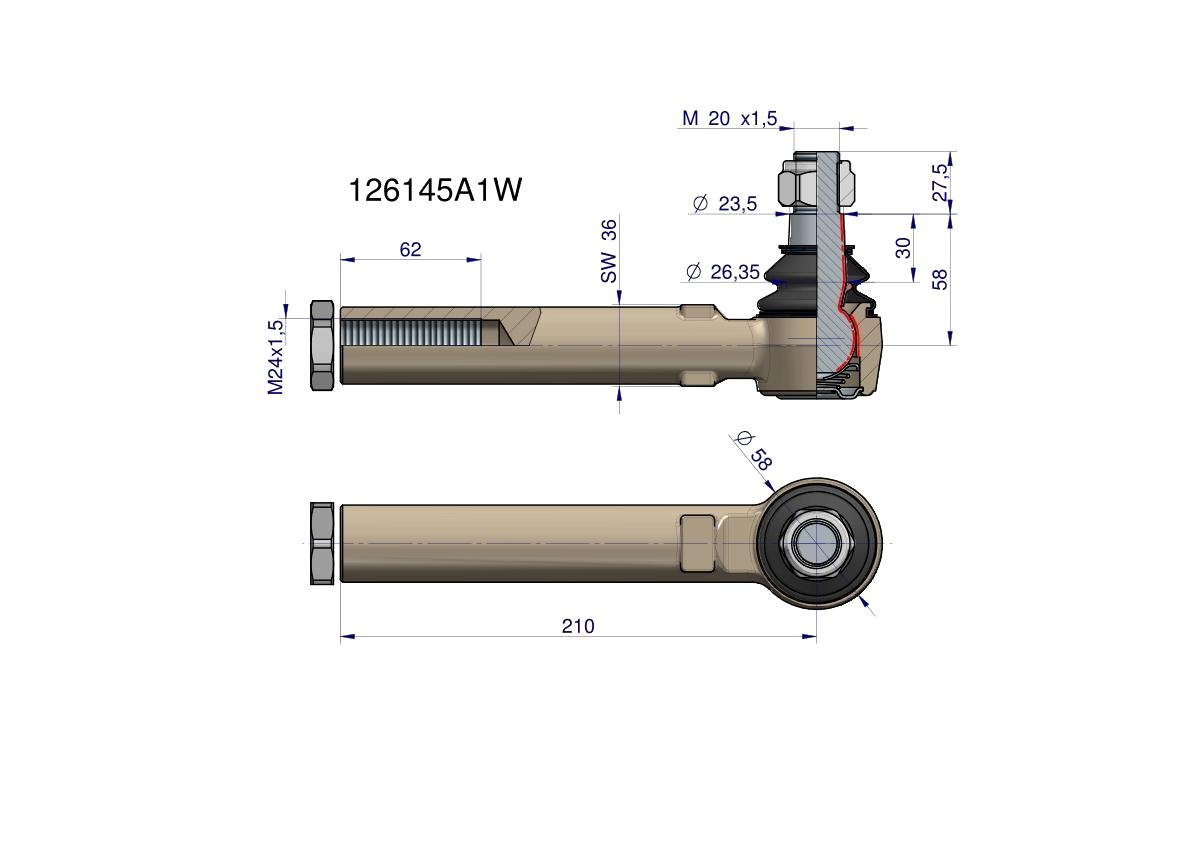 Przegub kierowniczy 210mm- M24x1,5 126145A1 WARYŃSKI