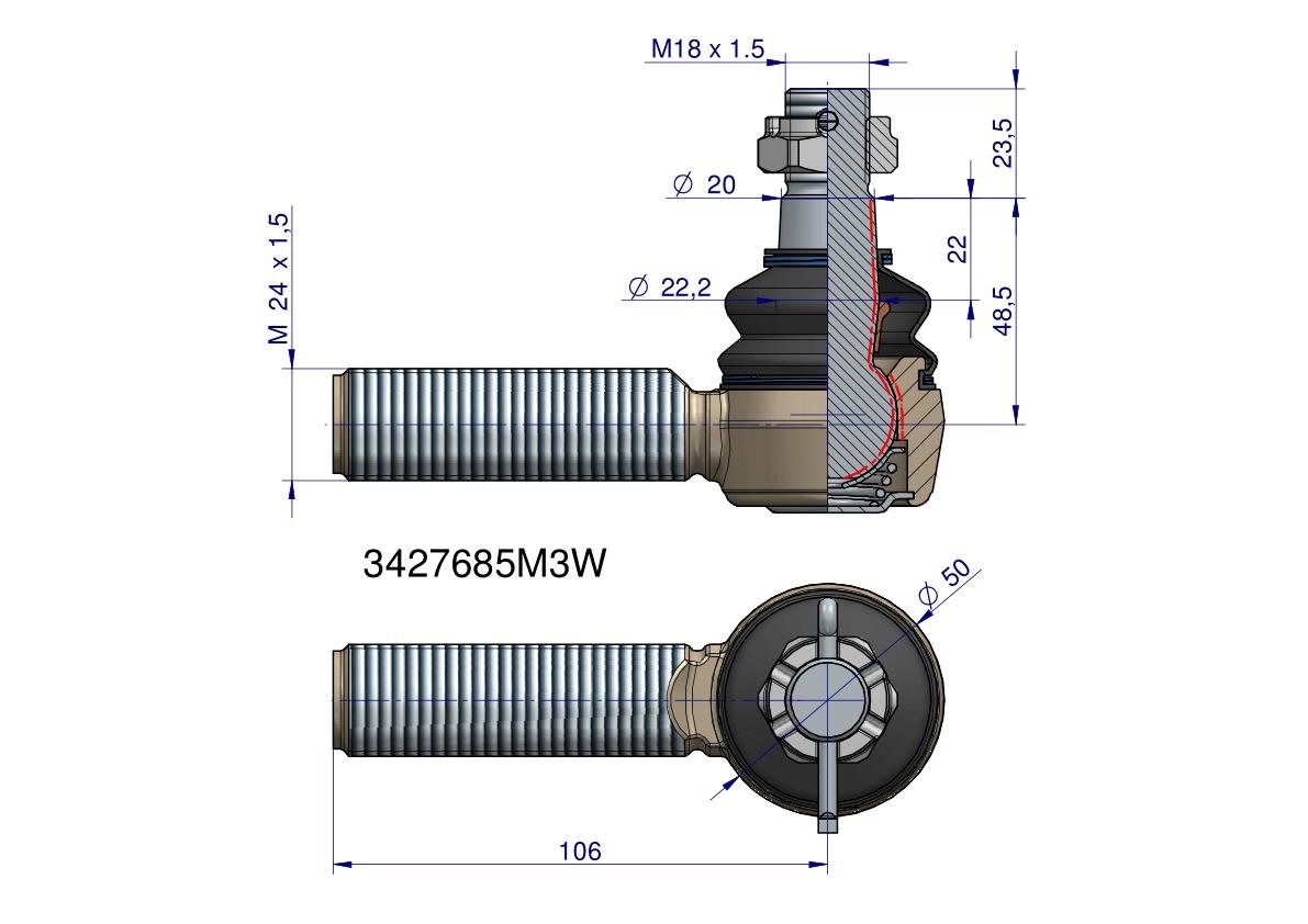 Przegub kierowniczy 24×1.5 3427685M3 WARYŃSKI [3427685M3W]