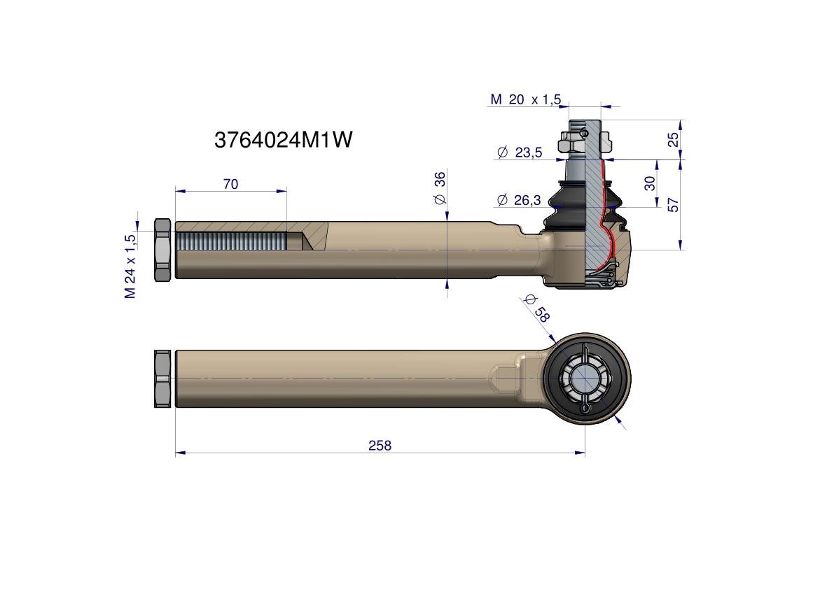 Przegub kierowniczy 258mm- M24x1,5 3764024M1 WARYŃSKI