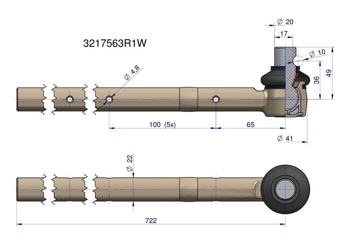 Przegub kątowy kulowy wsówany 3217563R1 WARYŃSKI