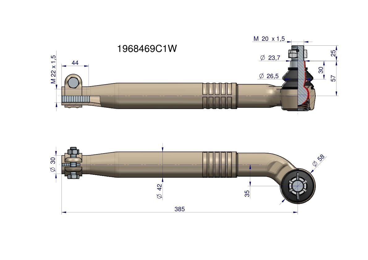 Przegub kierowniczy lewy 385mm- M22x1,5 1968469C1 WARYŃSKI
