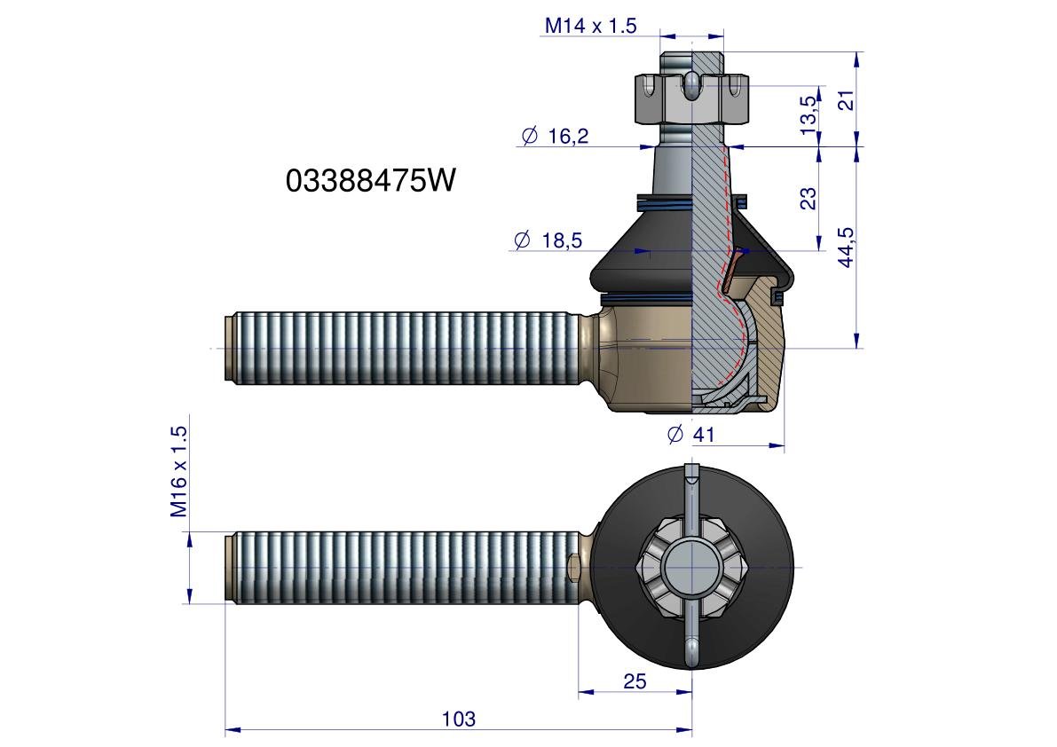 Przegub kierowniczy M16x1.5 03388475 WARYŃSKI [03388475W]