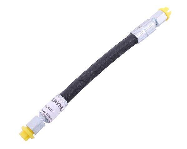 Przewód hydrauliczny Waryński 225 bar (22,5 MPa) gwint M12x1.5 proste L-210mm DN06-1SN (AA-06-210; 80600110) – elastyczny, wielofunkcyjny zakuty przewód wzmocniony pojedynczym oplotem z drutu stalowego do wskaźników C-385 Waryński. Sprawdzany ciśnieniem pulsacyjnym (medium: olej hydrauliczny). Przewód hydrauliczny Waryński ma na zakutych końcówkach zabezpieczenia w postaci żółtych korków. Dzięki temu do środka przewodów nie dostają się żadne zanieczyszczenia, które mogłyby wpłynąć na uszkodzenie elementów roboczych układu hydraulicznego. Wszystkie korki są gwintowane i wkręcane na odpowiedni rodzaj końcówki przewodu hydraulicznego.
