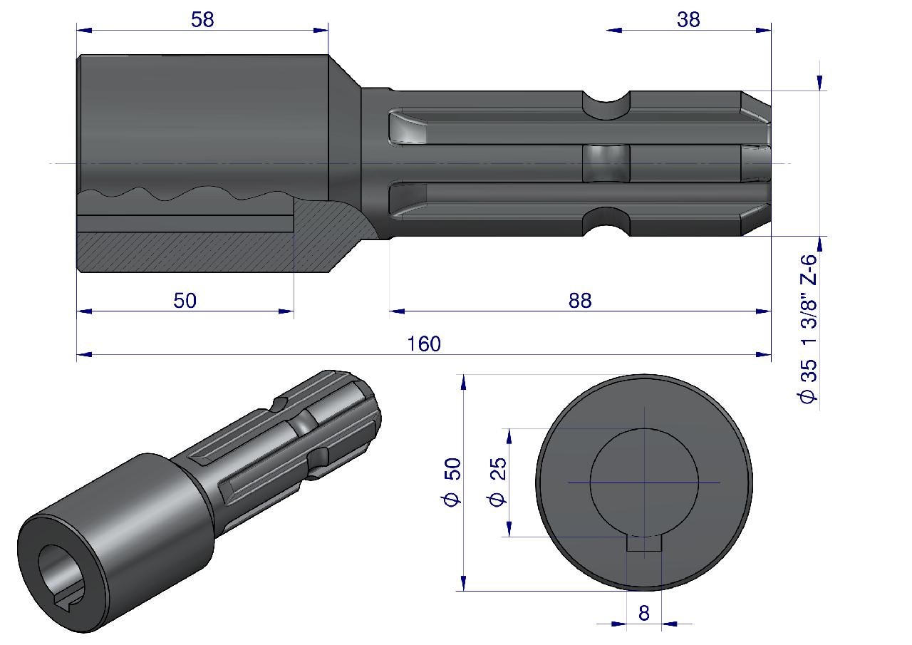 Redukcje, przedłużki, kształtki służą do przenoszenia mocy w napędach dodatkowych. Są montowane, gdy rozmiar przyłączy wałków nie jest kompatybilny bądź jeśli wał jest zbyt krótki.
