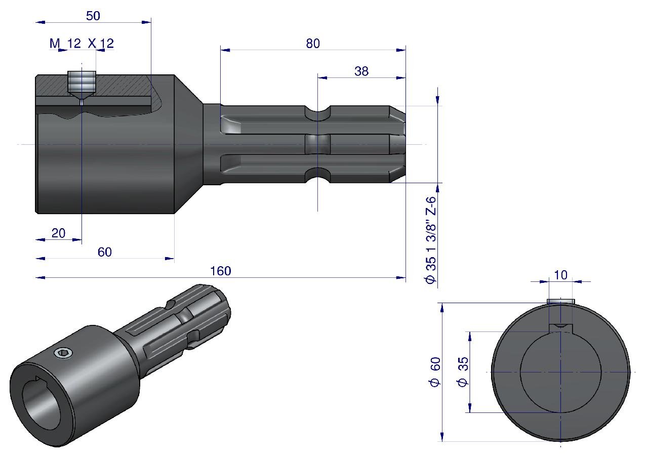 Redukcja tuleja na wpust otwór wew. Q 35 mm na wałek 1 3/8 ” 6 wpustów WARYŃSKI