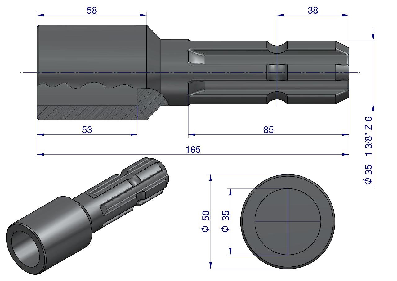 Redukcja tuleja otwór wew. Q 35 mm na wałek 1 3/8″ 6 wpustów WARYŃSKI