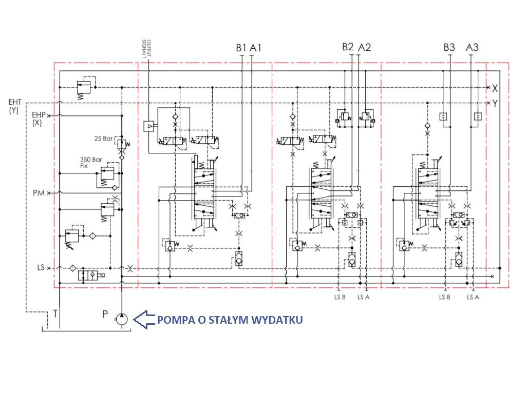 Rozdzielacz 6 sekcyjny, 120 l/min., proporcjonalny, kompensacja ciśnienia LS, z opcją sterowania dźwigniami, zaworem zrzutowym, 24V DC
