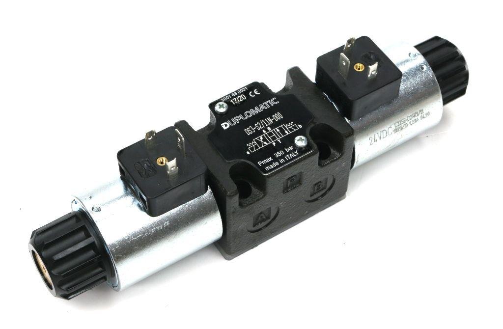 Rozdzielacz suwakowy, sterowany elektycznie Duplomatic. Wysokie ciśnienie pracy i duży przepływ pozwalają na montaż elektrozaworu w najbardziej wymagających aplikacjach.