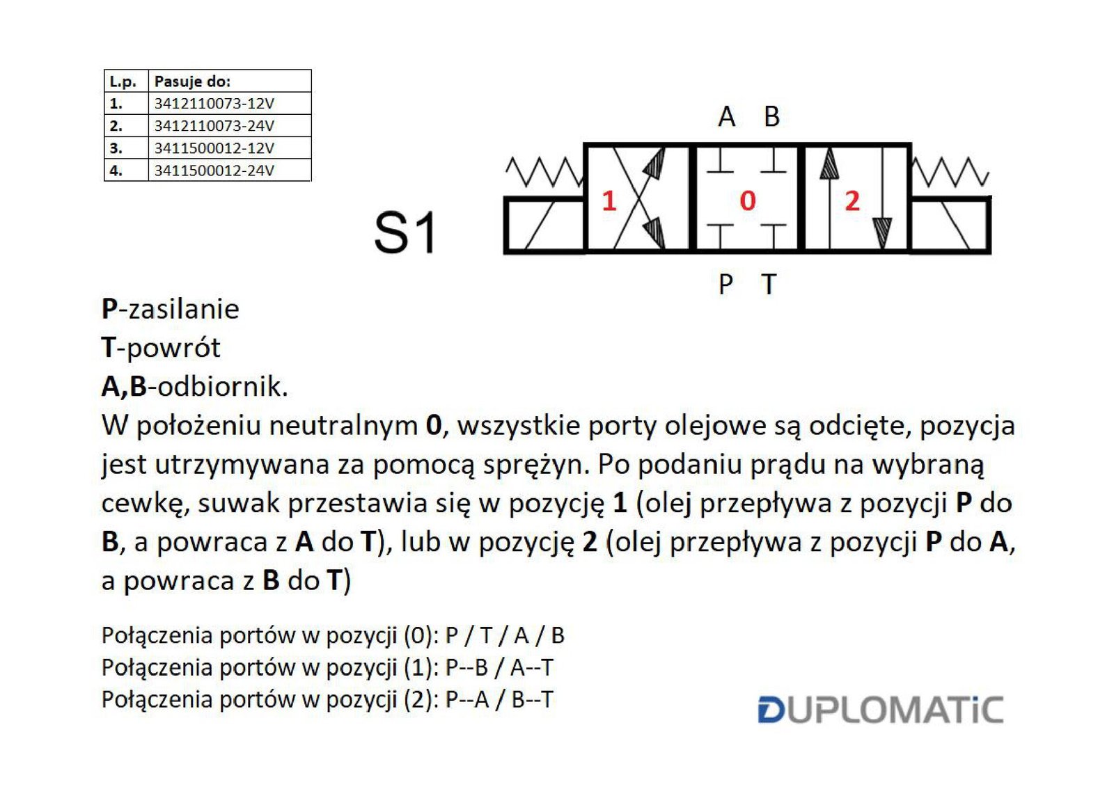 Rozdzielacz suwakowy, sterowany elektycznie Duplomatic. Kompaktowe, niewielkie wymiary elektrozaworu i samych cewek pozwalają na montaż w hydraulice mobilnej, przenośnych zasilaczach, rolnictwie.