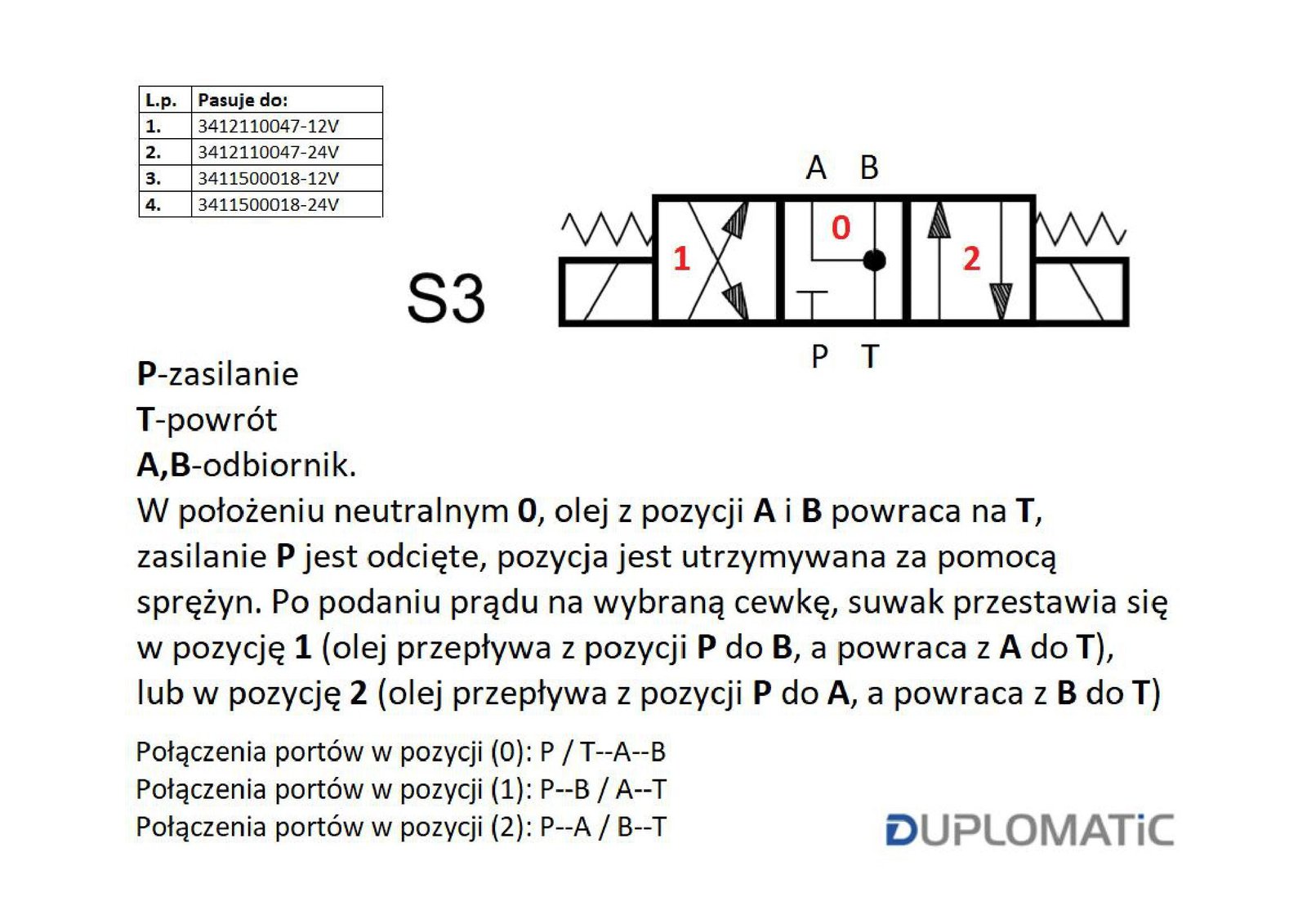 Napisz pierwszą opinię o „Rozdzielacz (elektrozawór) suwak „Y” DL3-S3/10N-D12 12V DC (cewka x 2) Compact 280bar. 50l/min Duplomatic [3412110047-12V]”