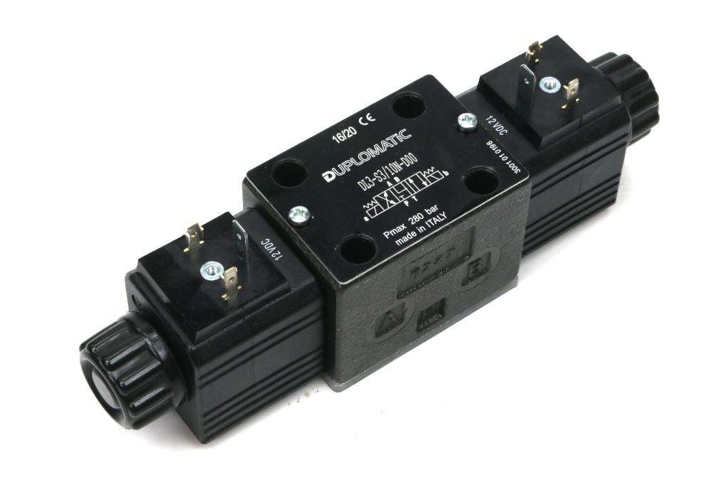Rozdzielacz suwakowy, sterowany elektycznie Duplomatic. Kompaktowe, niewielkie wymiary elektrozaworu i samych cewek pozwalają na montaż w hydraulice mobilnej, przenośnych zasilaczach, rolnictwie.