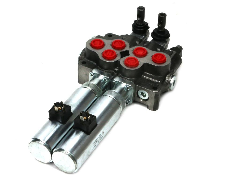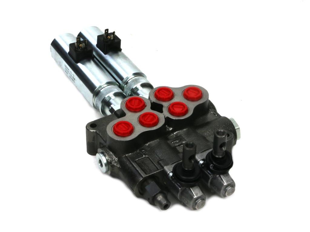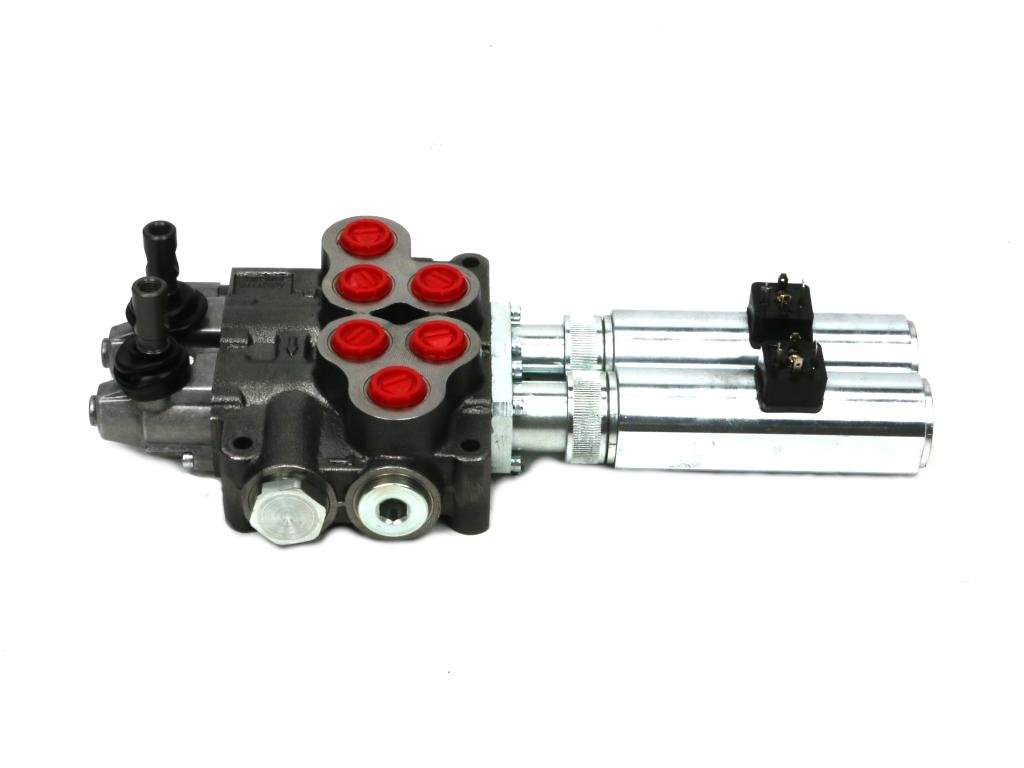 Rozdzielacz hydrauliczny, 2-sekcyjny, 80 l/min., sterowany ręczno-elektrycznie.