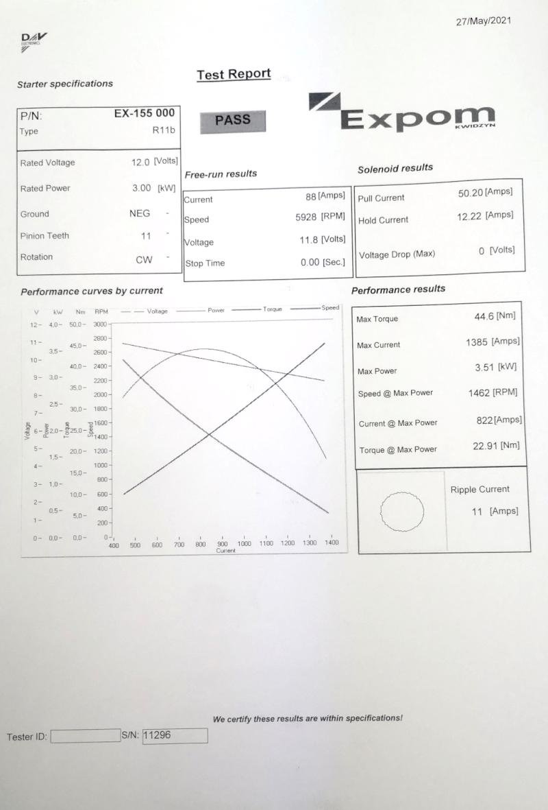 Rozrusznik R11B 12V 3kW C-385 EXPOM KWIDZYN eu, wykonany z najwyższej jakości komponentów dostarczanych tylko przez sprawdzonych i audytowanych poddostawców, 100% rozruszników przechodzi test wstępny oraz test końcowy, zwieńczony wydrukiem z numerem seryjnym. Numer ten wraz z testem pozostaje zachowany w archiwum Expom Kwidzyn eu oraz jego indywidualna kopia dołączona jest do produktu. Rozruszniki z EXPOM KWIDZYN eu są gwarancją solidności i jakości,posiadają wydłużoną gwarancję do 36 miesięcy.