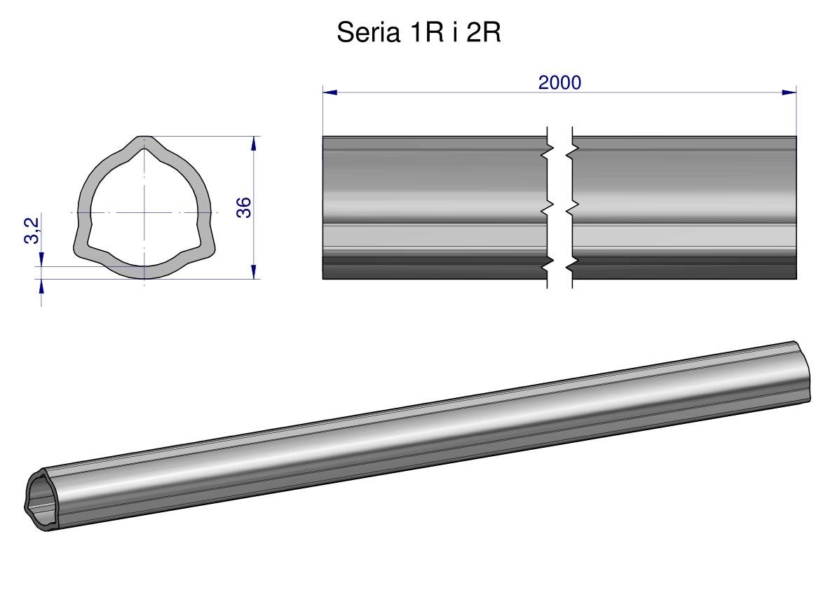Rura trójkątna wewnętrzna Seria 2R, rura zewnętrzna Seria 1R do wału przegubowo-teleskopowego 36×3.2mm 2m WARYŃSKI (sprzedawane po 2) [WR2140200]
