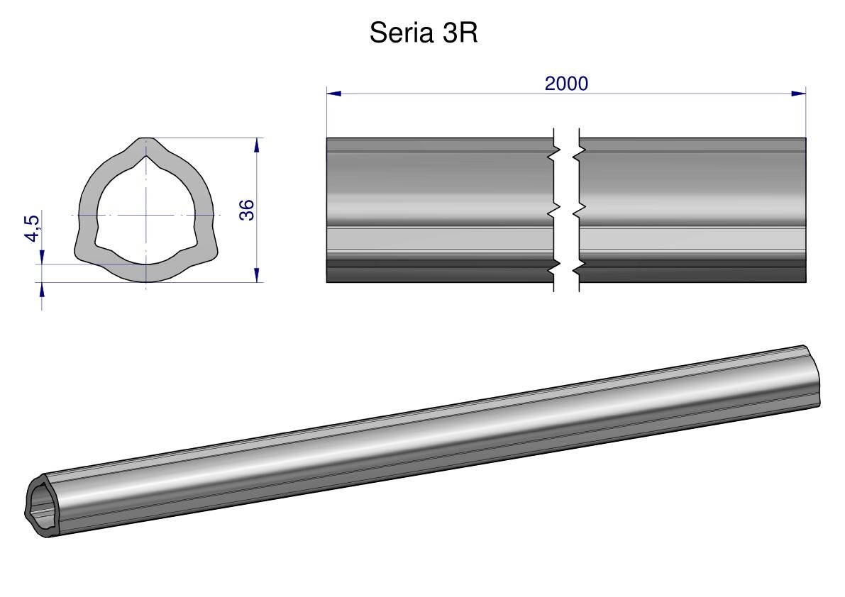 Rura trójkątna wewnętrzna Seria 3R wału przegubowo-teleskopowego 36×4.5 mm – 2m WARYŃSKI (sprzedawane po 2) [WR214030]