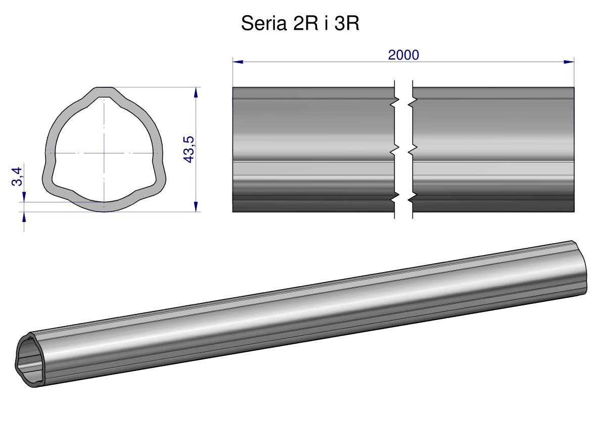 Rura trójkątna zewnętrzna Seria 2R i 3R do wału przegubowo-teleskopowego 43.5×3.4mm 2m WARYŃSKI (sprzedawane po 2) [WR214130]