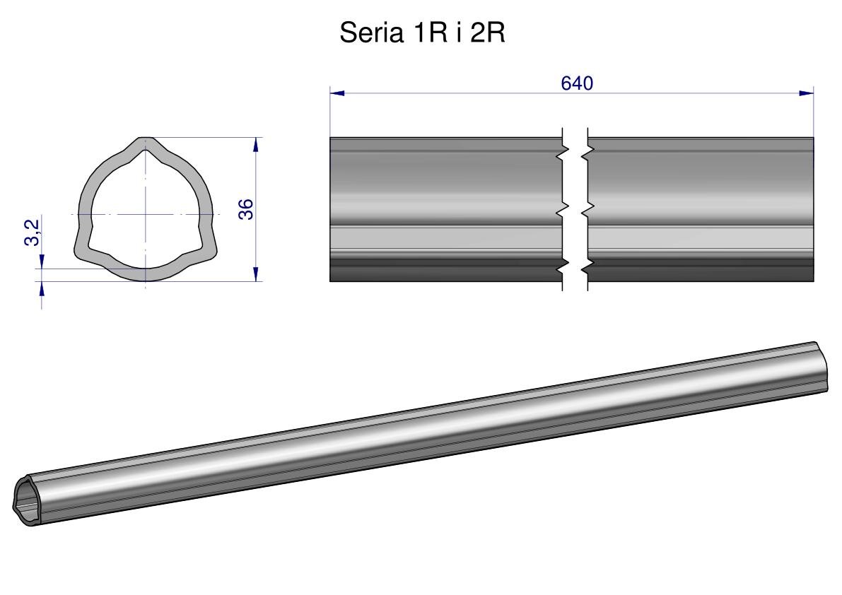 Rura wewnętrzna Seria 2R, rura zewnętrzna Seria 1R do wału 760 przegubowo-teleskopowego 36×3.2 mm 640 mm WARYŃSKI [WR2321640]