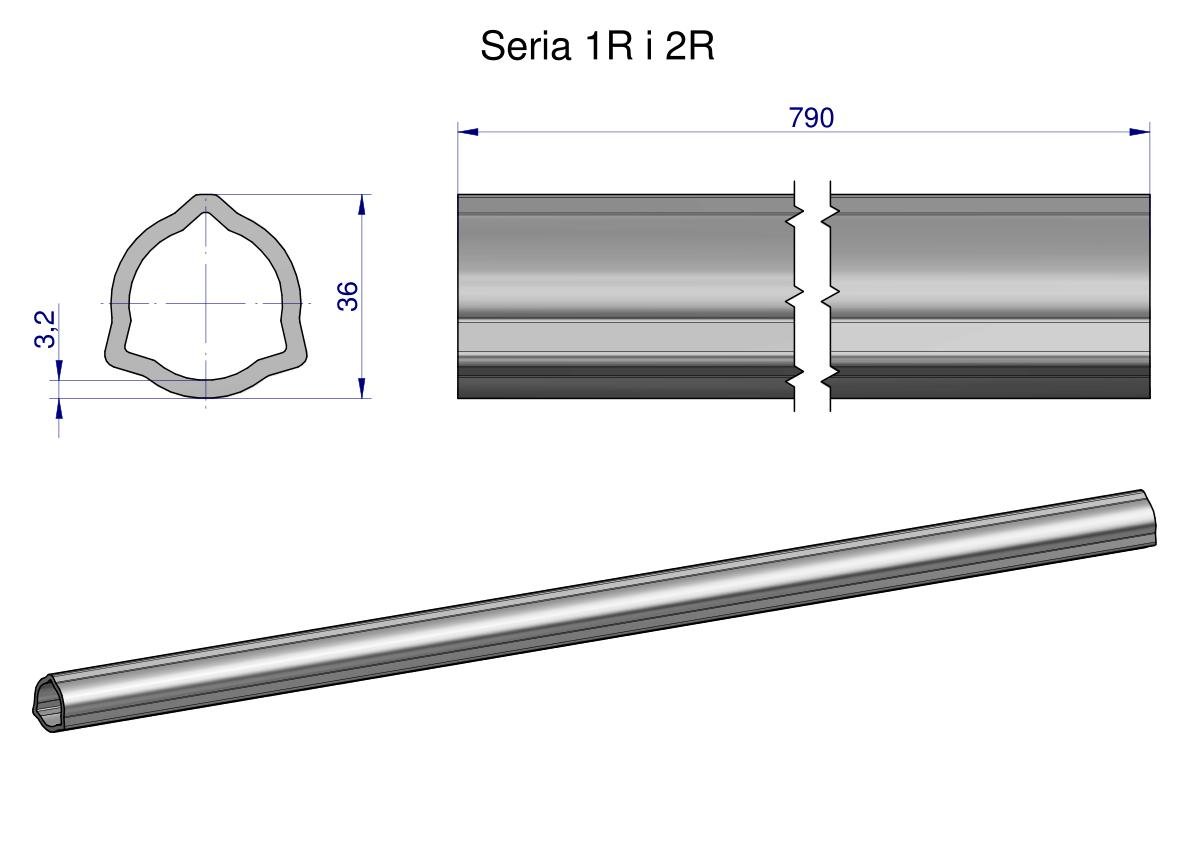 Rura wewnętrzna Seria 2R, rura zewnętrzna Seria 1R do wału 910 przegubowo-teleskopowego 36×3.2 mm 790 mm WARYŃSKI [WR2321790]
