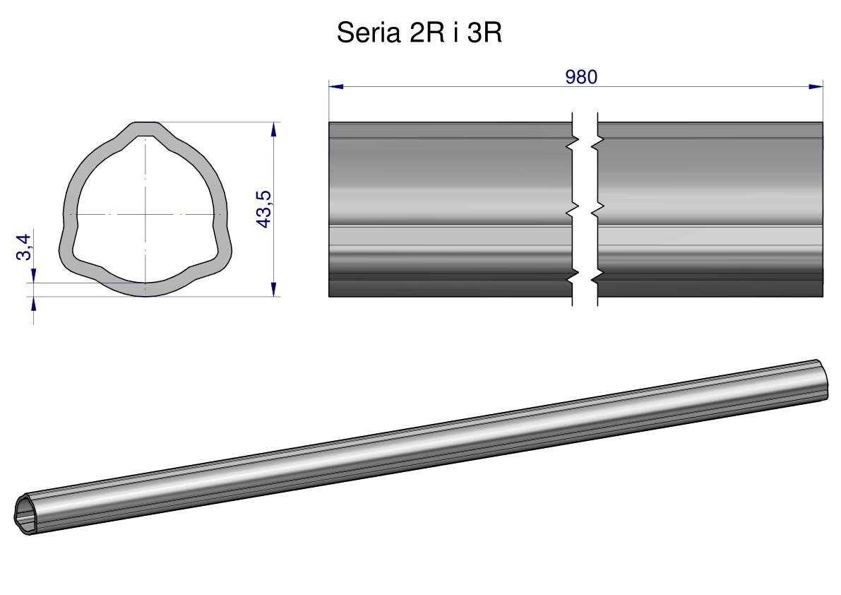 Rura zewnętrzna Seria 2R i 3R do wału 1110 przegubowo-teleskopowego 43.5×3.4 mm 985 mm WARYŃSKI [WR2322985]