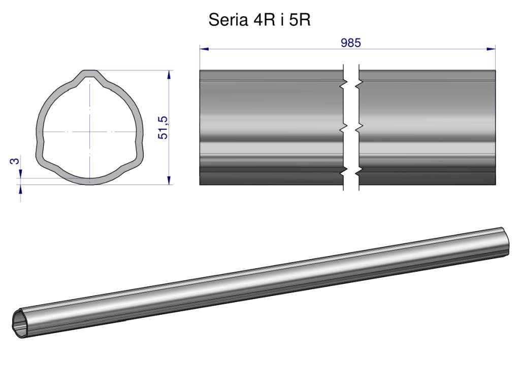 Rura zewnętrzna Seria 4R i 5R do wału 1110 przegubowo-teleskopowego 51.5×3 mm 985 mm WARYŃSKI [WR2342985]