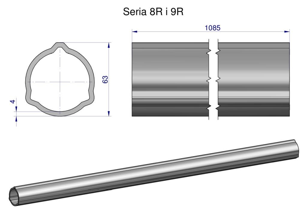 Rura zewnętrzna Seria 8R i 9R do wału 1210 przegubowo-teleskopowego 63×4 mm 1085 mm WARYŃSKI [WR23821090]