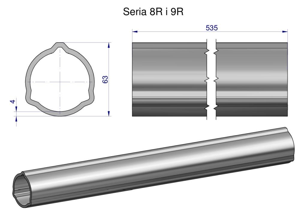 Rura zewnętrzna Seria 8R i 9R do wału 660 przegubowo-teleskopowego 63×4 mm 535 mm WARYŃSKI [WR2382535]