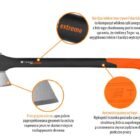 Antypoślizgowa rączka gwarantuje wygodę i bezpieczeństwo użytkowania. Specjalnie wyprofilowane zakończenie trzonka zapobiega wyślizgnięciu się siekiery. Pełną kontrolę podczas pracy zyskujemy dzięki chropowatej strukturze rączki. Jej duży obszar umożliwia pełniejszy chwyt siekiery, pozwala także na długotrwałą pracę bez odcisków. W zestawie znajduje się ochraniacz, który chroni ostrze podczas przenoszenia i przechowywania. Niewątpliwym atutem siekiery TEGER jest ostrze, jest nie tylko ostre, ale także precyzyjne. Dodatkowo zastosowano nieprzywierającą powłokę na głowicy, która zmniejsza tarcie, ułatwiając pracę. Powłoka chroni ostrze przed korozją. Głowica i trzonek są połączone metodą wtryskową, co gwarantuje stabilność ostrza, i bezpieczeństwo użytkowania.