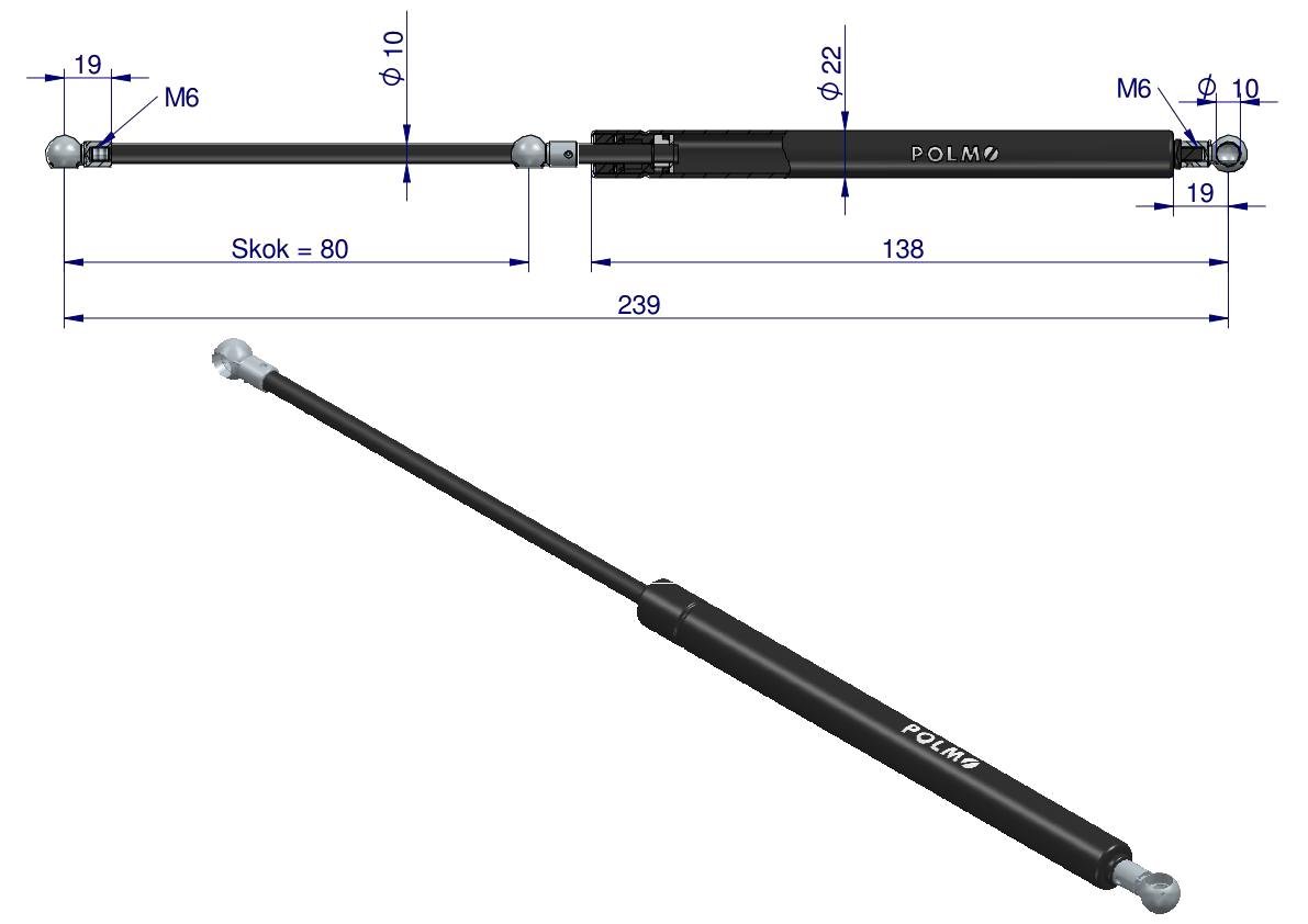 Siłownik drzwi L max. 239mm 4428680P DEUTZ HÜRLIMANN LAMBORGHINI SAME POLMO [4428680P]